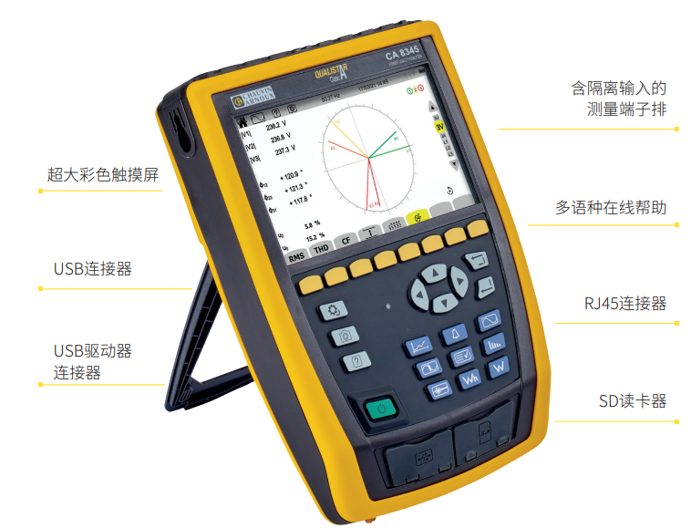 法國(guó)CA新標(biāo)電能質(zhì)量分析儀CA 8345 是 A 級(jí) Qualistar 功率和能源質(zhì)量分析儀。
